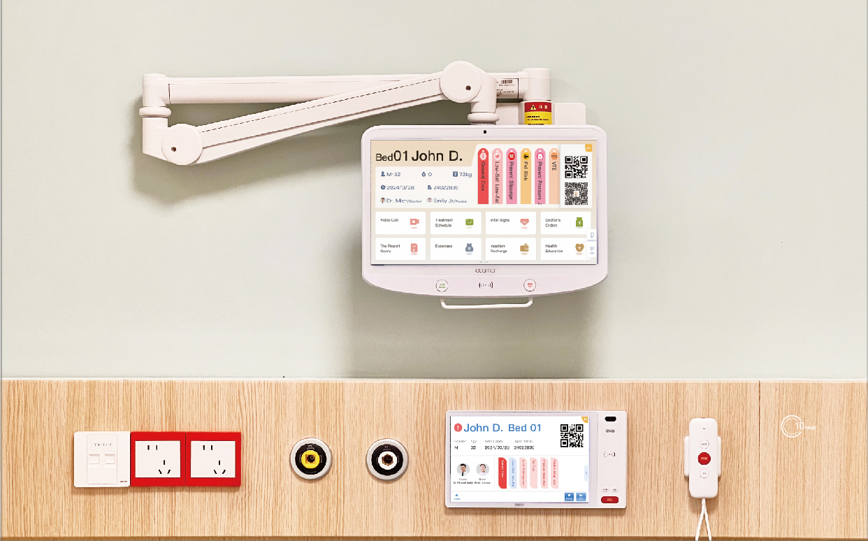 Connected Hardware & Coordinated Displays: All terminals work in tandem, ensuring seamless information flow across wards—from bedside devices to the nurse station.